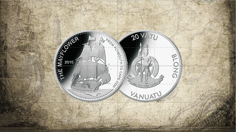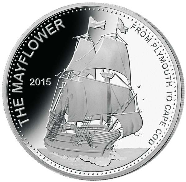 THE PILGRIMS' SHIP "MAYFLOWER" BEAUTIFULLY PRESENTED ON A SILVER COIN